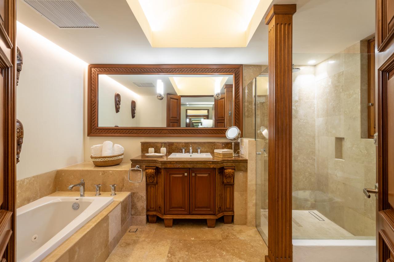 Most of the living areas have spectacular view of the private pool and the Pacific Ocean. The property has a primary home with expansive terraces which blend perfectly with the tropical lush of Punta MIta