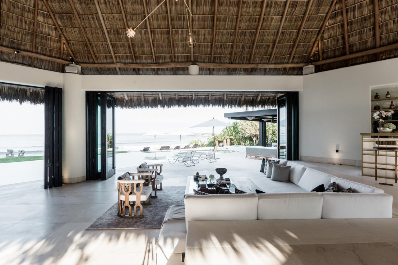 With a first of its kind contemporary resort chic style, Casa Fortuna is laid out like a boutique hotel. Each of its six bedrooms are housed in their own individual casitas, with the extremely spacious shared living area in its center. Within the high thatched ceiling of the main living area, you’ll find plenty of comfortable seating, a formal dining area, wet bar, and large openings to the terrace in every direction, filling interior spaces with fresh ocean air. The kitchen features high end stainless steel appliances, beautiful wood cabinetry, and plenty of functional countertop workspace. Prepare meals yourself or relax and let the gourmet chef treat you to her culinary delights.