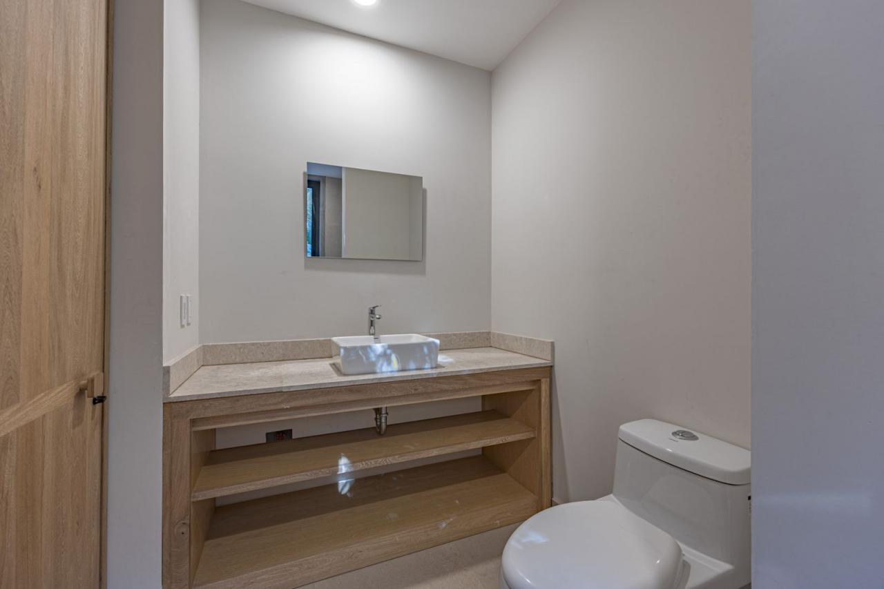 The interior of this Punta Mita villa comprises five expansive bedrooms, each thoughtfully equipped with central air conditioning, king-size beds, and en-suite bathrooms to ensure unparalleled comfort and privacy. Its open-concept architecture seamlessly integrates the spaces along a corridor accentuated by a distinguished circular fountain, imparting an air of refinement and tranquility.