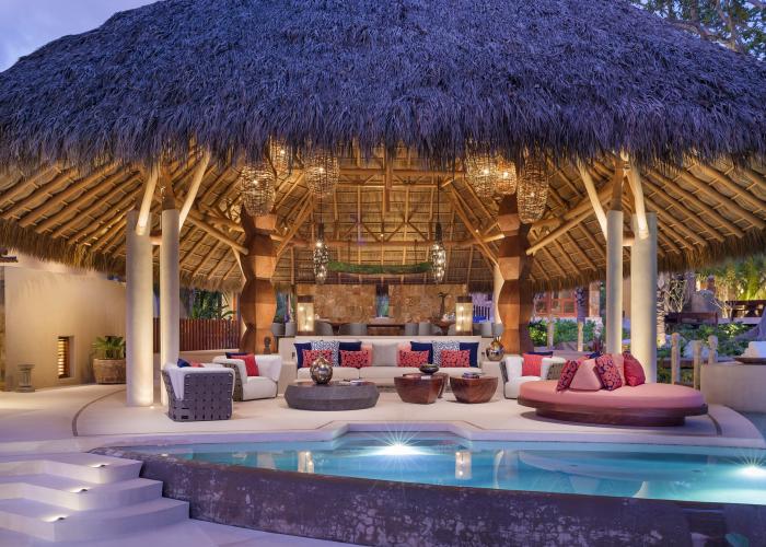 Located in the Punta Mita resort, Palmasola offers guests 25,000 square feet of spacious living, comprised of eleven beautifully designed structures in a village like beachfront setting. A three bedroom master residence, a four bedroom guest residence, and two garden apartments comfortably sleep 18 guests, and is perfect for three or four families...